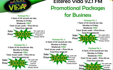 Estereo Vida 92.1FM no garantiza: 1) la exactitud, adecuación, calidad, validez, integridad o idoneidad de cualquier información para cualquier propósito; se alienta al oyente a hacer su propia investigación; 2) que la información no contendrá material orientado a adultos, o material que algunos individuos consideren objetable.